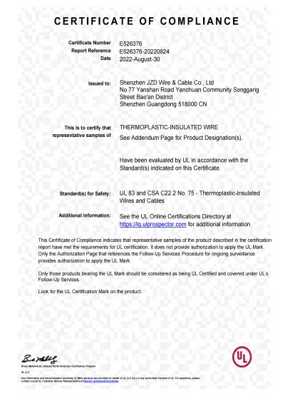 建圳達(dá)THHN美標(biāo)UL尼龍電纜證書